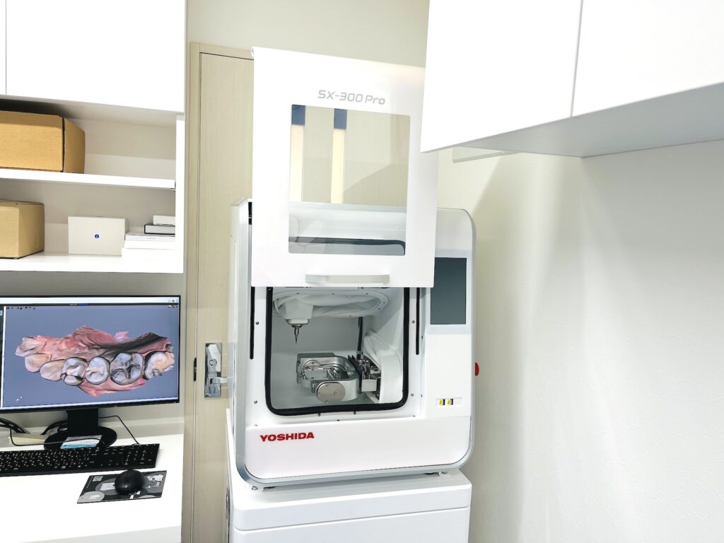 当医院ではCTはもちろんのこと今後主流となるデジタル治療を提供できる環境がございます。従来技工士さんが行っていた型取り模型作成を口腔内カメラで型取り、PCにて被せ物を院内で完成させます。